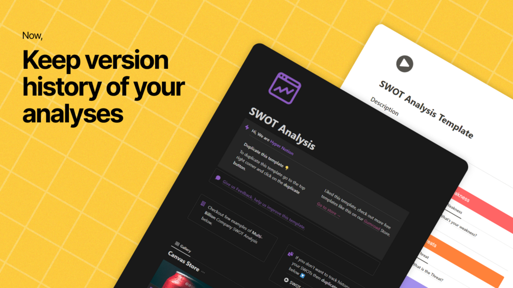 SWOT Analysis Template for Product Teams with both Vibrant and Minimal Theme whichever is your style.